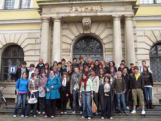 deutsche" und schottische Schüler vor dem Ingolstädter Rathaus