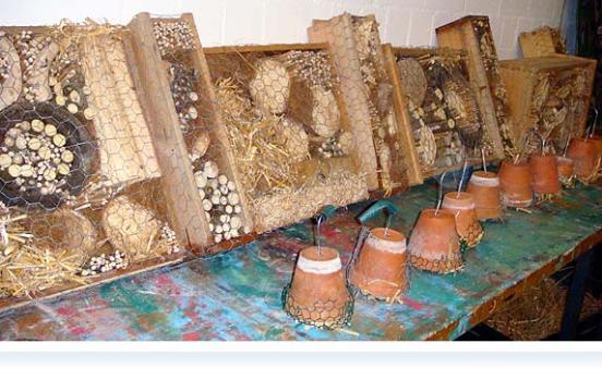 Am Freitag, 24. April 2009, trifft sich die Schulgartengruppe endlich wieder im Grünen. Unsere "Insektenhotelanlage" konnte durch tatkräftige Unterstützung aus dem Biologie-Chemie-Seminar fertig gestellt werden und kann an der Südseite unseres Gartenhauses montiert werden. Die kleinen "Bungalows" finden reichlich Platz in Sträuchern und Bäumen. Auch für unsere Wetterstation wählen wir einen geeigneten Platz aus.