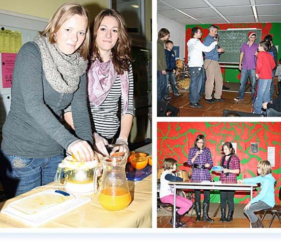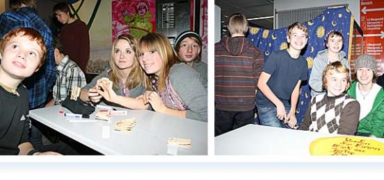 Die Stimmung war ziemlich ausgelassen. Eine lustige Idee war das Duell zwischen Schülern und Lehrern. Dabei wurden jeweils ein Schüler und ein Lehrer auf die Bühne geholt und es wurden Fragen gestellt. Wer die Frage schneller beantwortete, bekam einen Punkt.
