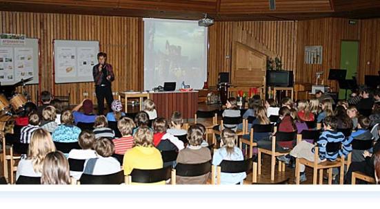 Nach der symbolischen Scheckübergabe informierte Frau Erös von „Kinderhilfe Afghanistan“ in diesem Jahr die Schülerinnen und Schüler von drei 6. Klassen. Und es wurde eine spannende, erlebnisreiche und vor allem äußerst informative Reise in ein „wunderbares Land“ der Kontraste mit „wunderbaren Menschen“, die allerdings nun seit 30 Jahren unter dem Krieg und seinen Folgen zu leiden haben, so die Referentin.