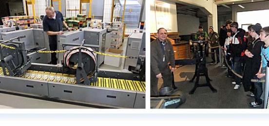 Von da an übernahm ein Mitarbeiter der Technik und zeigte uns die Druckerei, indem er uns an die einzelnen Stationen des Zeitungsdrucks begleitete, wo uns erklärt wurde, wie die Druckplatten für die einzelnen Seiten entstehen und wie die eigentliche Druckmaschine funktioniert. Dabei kamen wir an einer Museumsecke, den Farbtankanlagen, den Druckern und am Prospektverteiler vorbei.
