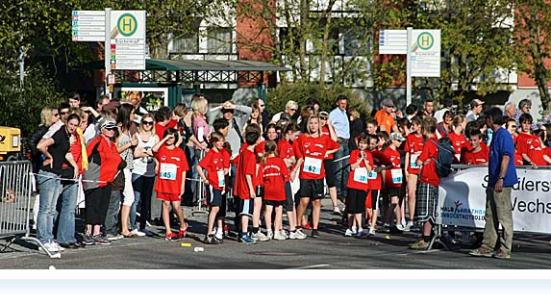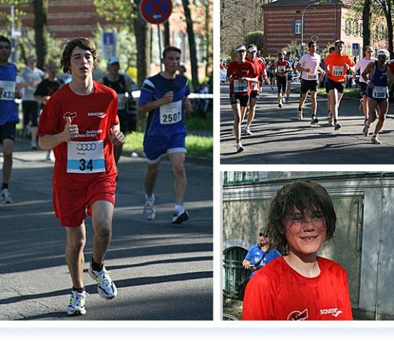 Plötzlich geht alles ganz schnell: man biegt ab in die Wechselstation und sucht seinen Partner, an den man dann den mit Klettverschluss befestigten Zeitmess-Chip übergeben muss. Der Chip ist wieder auf der Reise und man sieht noch das Logo des Apian-Gymnasiums auf dem Rücken des Staffelpartners zwischen den anderen Läufern verschwinden.