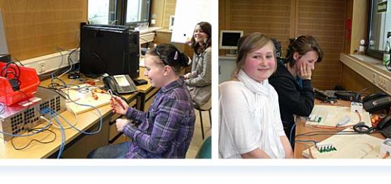 Jedoch es gibt in sozialen Berufen nur wenige Männer, während es in vielen technischen Berufen an Frauen mangelt. Damit sich dies ändert, öffnen die Betriebe jedes Jahr am Girls´Day ihre Pforten. In diesem Jahr beteiligten sich 64 Mädchen der Klassen 8 bis 10 des Apian-Gymnasiums, wie Regina und Paula, Kl. 10. Sie besuchten die Hochschule für angewandte Wissenschaften in Ingolstadt. Dort zeigten ihnen Frau Prof. Bschorer und Studentinnen die Labors. „Mit der Wärmebildkamera fanden wir heraus, wie cool wir sind“, so die Mädchen.