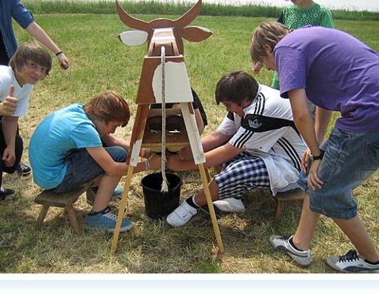 Dort warteten auf die Schüler und Schülerinnen im Rahmen der Aktionswoche "Schulmilch 2010" zwei Programmpunkte. Zum einen erfuhren sie an verschiedenen Stationen rund um den Hof Interessantes über die Arbeit auf dem Bauernhof sowie über artgerechte Kuhhaltung.