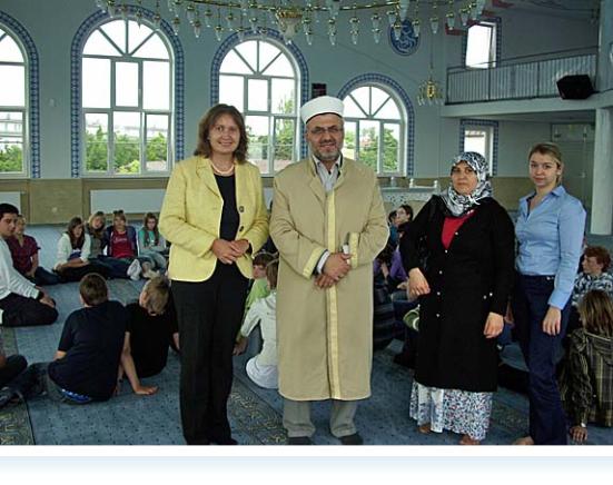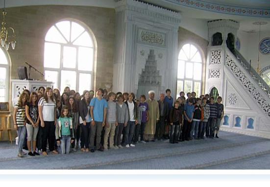 Ein umfangreiches Programm erwartete die Schülerinnen und Schüler bei ihrem Besuch der Türkisch – Islamischen Gemeinde und ihrer Moschee, die im Jahre 2008 eingeweiht wurde. Die Moschee birgt als ihre wichtigste Stätte den schönen Gebetssaal, der die Schülerinnen und Schüler sowie die Religionslehrkräfte in Ehrfucht gebietender Würde empfing. In diesem Saal, wo sich die Männer der Gemeinde auch zum gemeinsamen Freitagsgebet versammeln, erläuterte Oğuz Taşdelen, ein ausgebildeter junger Moscheenführer die fünf Säulen des Islam, insbesondere das Gebet.