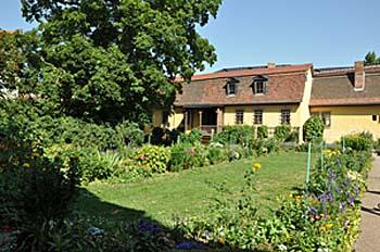 Danach ging`s wieder in fröhlichere Gemäuer, nachdem wir leider die russische Kirche über der Gruft wegen eines Gottesdienstes der Gemeinde nicht besuchen konnten, und zwar in Goethes Gartenhaus, das ihm von Herzog Karl August geschenkt wurde, um ihn an Weimar zu binden. Dort gab es auch wieder mal eine Führung in original thüringischem Dialekt.