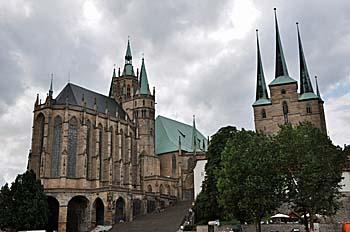 Per Zug reisten wir weiter nach Erfurt, wo übrigens der Kinderkanal seinen Hauptsitz hat. Man erkennt das an den überdimensionierten orangen Mäusen und kleinen blauen Elefanten, die überall auf den Plätzen stehen. Wir besichtigten aber leider nicht KiKa, sondern den Dom, die Synagoge und die Studentenbursen. Das war aber auch in Ordnung, schließlich sind die deutschen Kirchen meist gut klimatisiert.