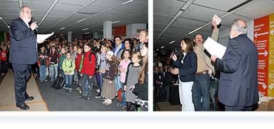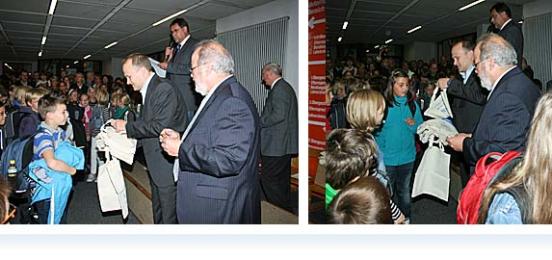Gespannt und aufgeregt warteten die neuen Gymnasiasten darauf, von Schulleiter Walter Schäfer persönlich begrüßt zu werden. Alle Mädchen und Jungen bekamen eine Apian-Tasche und der erste Schultag wurde mit ein paar Gummibärchen versüßt.