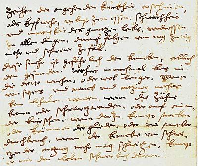 Er stellte ausgewählte Aspekte der Stadtgeschichte dieser Epoche vor, wie z. B. die wirtschaftlichen und sozialen Veränderungen, die der Krieg für "die Schanz" mit sich brachte. So erfuhren die Schülerinnen und Schüler über die betrügerischen Manipulationen an Geldmünzen und die damit verbundene Geldentwertung oder aber auch über die katastrophalen hygienischen Verhältnisse innerhalb der Festungsmauern, die schreckliche Seuchen nach sich zogen, sodass die Menschen in diesen Tagen "so hauffenweiß hinweckh sterben". Bei der wenig appetitlichen Beschreibung der Symptome des "Ungarischen Fiebers" konnten sich die Schülerinnen und Schüler daran versuchen, die Schrift einer Quelle des 17. Jahrhunderts zu entziffern.