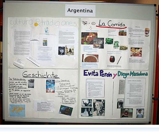 Auch die Klasse 9e hat ihren Beitrag zum Jubiläum geleistet in Form einer kleinen Ausstellung, in der das Land vorgestellt wird und die neben dem Mensa-Eingang zu sehen ist.