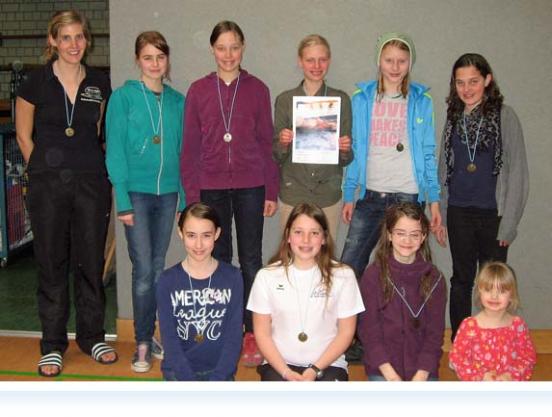 Begonnen wurde mit der 6 x 25 m Beinschlagstaffel, die in einer Zeit von 2:41,72 min geschwommen wurde. Im nächsten Lauf fand die 6 x 25m Koordinationsstaffel statt. Im Wechsel wurden dreimal Brustschwimmarmbewegung in Bauchlage mit kontinuierlichem Wechselbeinschlag und dreimal seitengleiche Rückenschwimmarmbewegung in Rückenlage mit kontinuierlichem Brustschwimmbeinschlag geschwommen. Hierbei erreichten die Mädchen eine Zeit von 2:21,50 min. Es folgte die 4 x 25 m Brustschwimmstaffel, bei welcher Sofie Nixdorf (Kreismeisterin im Brustschwimmen) ihre Mannschaft tatkräftig unterstütze, so dass eine Zeit von 1:30,13 min erzielt werden konnte. In der letzten 6 x 25 m Freistilstaffel erlangten die Mädchen in einem spannenden Rennen eine Zeit von 1:57,82.