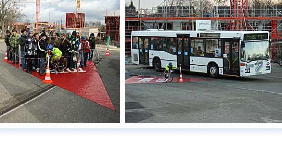 Ein Bus mitten auf dem Pausenhof des Apian-Gymnasiums? Was es damit auf sich hatte, durften die Schülerinnen und Schüler der fünften Jahrgangsstufe am 7. und 8. Dezember 2011 hautnah erfahren - Und so verschwand dann schon einmal eine ganze Klasse im Toten Winkel des Busses!