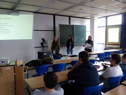 Zur Thematik “Studium an der THI“ erhielten die Schülerinnen und Schüler im Anschluss Informationen aus erster Hand durch Studentinnen der THI in den verschiedensten Semestern. Im Bereich Informatik gaben Frau Geitner und Frau Zieglmeier, zwei ehemalige Schülerinnen des Apian-Gymnasiums, wertvolle Tipps und beantworteten konkrete Fragen der Schülerinnen und Schüler. Im Bereich Wirtschaftsingenieurwesen konnten Frau Imrich und Frau Müller wichtiges Insiderwissen an die Schülerinnen und Schüler vermitteln.