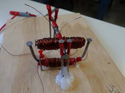 Ein Elektromotor ist der Grundbaustein vieler Elektrogeräte. Wie so ein Gerät funktioniert konnten die Klassen 9d und 9c anhand einer praktischen Übung erfahren. Sie durften während der Physik-Übungsstunden selbst einen bauen. Durch den Nachbau mit Hilfe von Anleitungen, meist aus dem Internet, konnten die Schüler ihre kreative Seite zum Vorschein bringen. Sie bauten mit Gegenständen aus dem Alltag oder Baumarkt Rotoren, Kommutatoren oder auch Elektromagneten.