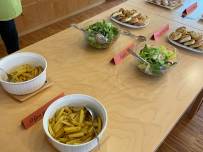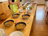 Am Ende des Workshops trafen wir uns alle gemeinsam im Speiseraum, wo wir uns von allen Gerichten etwas nehmen und alles probieren konnten. Es war beeindruckend zu sehen, wie vielfältig das Buffet geworden ist. Und das Beste: Es hat alles hervorragend geschmeckt! Der Tag in der Landwirtschaftsschule war für uns ein voller Erfolg. Wir hatten nicht nur sehr viel Spaß, sondern haben auch wichtige Erkenntnisse über gesunde Ernährung, regionale Produkte und praktische Küchenfertigkeiten gewonnen.